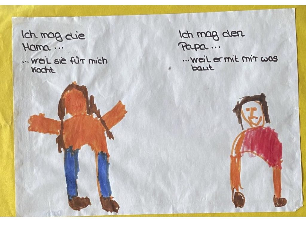 Egal ob die Eltern nun eine klassisches oder futuristisches Elternbild leben – Kinder definieren Vater und Mutter nach ihren „Vorzügen“ – Väter drücken ihre Liebe meist durch Taten aus – wohl weil sie nicht so gut reden können wie die Frauen. Dieses Bild unten malte mir mein Sohn mit 5 Jahren, nun hat er selber Kinder mit 5 Jahren und kommt mit zum Camp und baut was für seine Kinder. Machs wie er :_) !